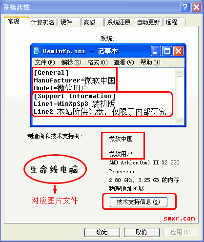下面就说一下如何修改xp系统属性中的oem,让系统更个性化。